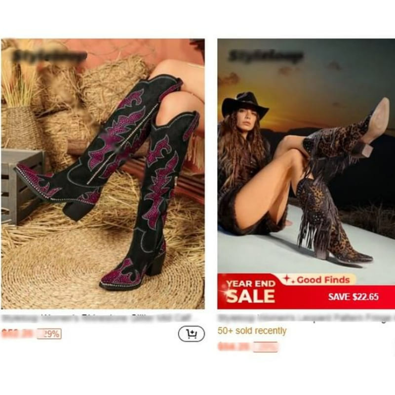 We've recently uncovered that a competitor has replicated our original designs, including the hot pink rhinestone western boots, cow print boots, and leopard print boots, and is selling them at a lower price. While we appreciate the imitation as a form of flattery, it's crucial to keep our valued customers informed.