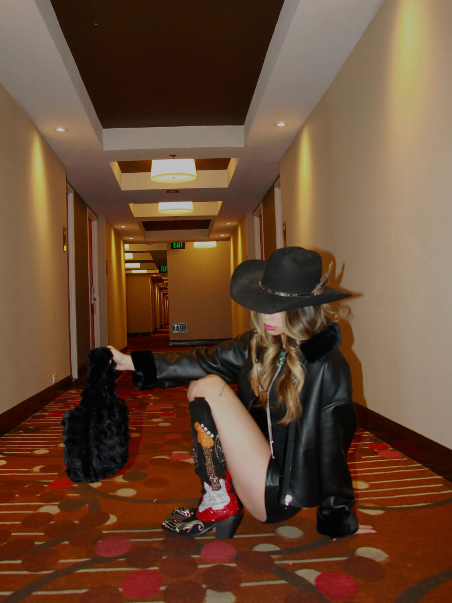 These boots are crafted from Faux Suede, featuring a dominant black color palette, adorned with exquisite bass guitar designs embellished with sparkling Rhinestones. This unique design not only showcases the allure of music but also highlights your personality and flair. Whether performing on stage or in daily life, these boots will make you the center of attention.