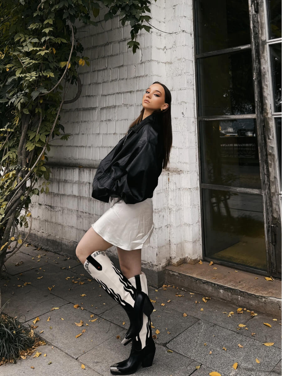 Crafted from high-quality PU, these cowboy boots feature a bold black flame pattern. The metal toe adds both protection and style. The black and white color scheme is versatile for pairing with jeans or casual wear, making them an ideal choice for those seeking a personalized look.