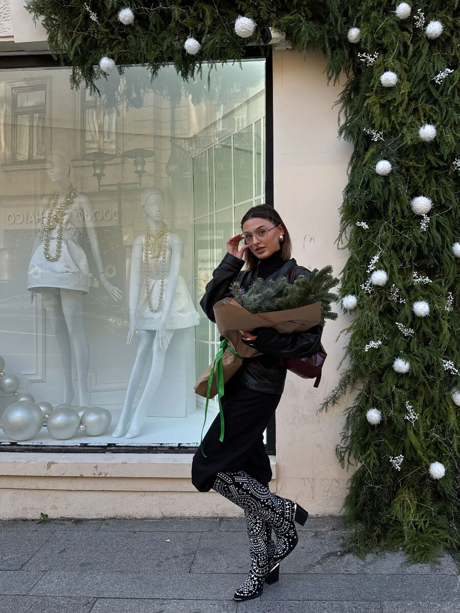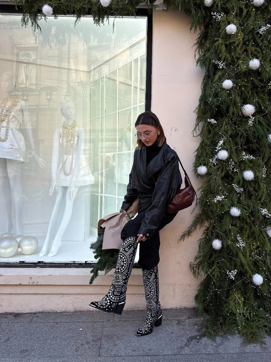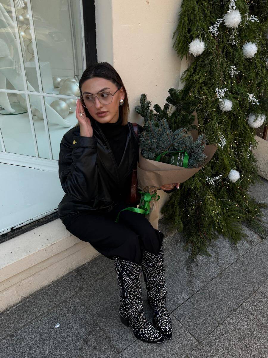 The silver sequin embellishments on the boots form star and snow motifs, evenly distributed across the surface to create a harmonious and captivating visual effect. Paired with a chunky heel, they embody the perfect fusion of Western boots and modern style, making you feel runway-ready the moment you put them on.