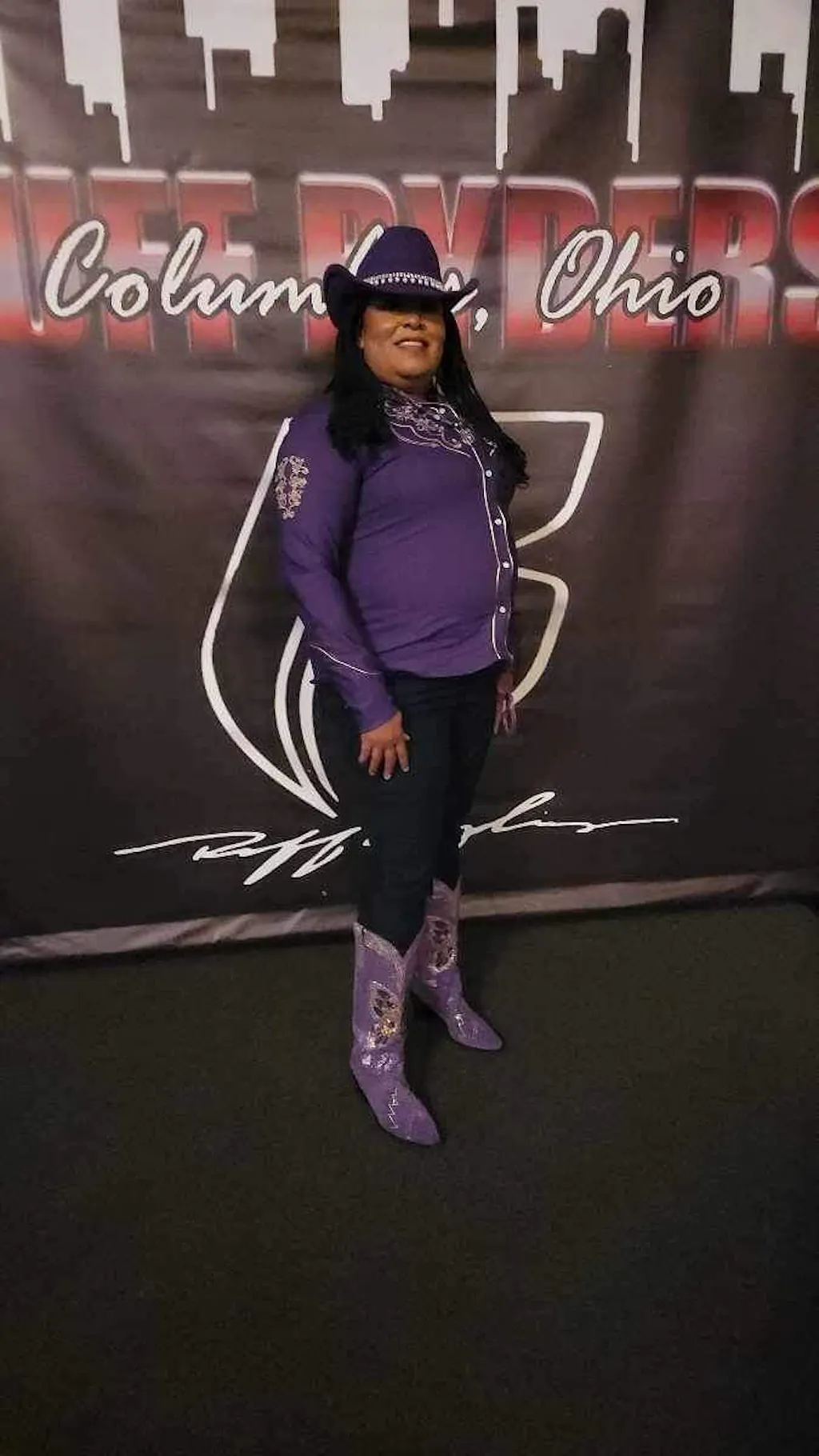 The purple western boots adorned with a sparkling colorful butterfly pattern made from rhinestones. The smooth texture of the faux suede material and chunky heel give a refined finish, while the comfortable lining ensures a perfect fit for all-day wear. Perfect for adding a bold, whimsical touch to any outfit.