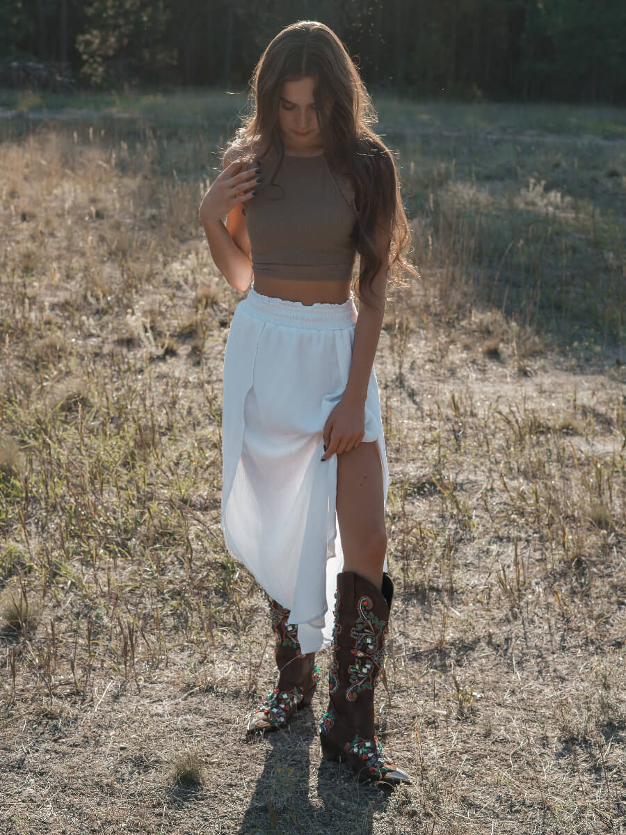 Embrace these dazzling jeweled cowboy boots! Crafted from premium dark brown velvet, they feature a protective steel toe, ensuring both safety and style. The shaft is adorned with colorful jewels, adding a hint of luxury to the rugged design. The pointed toe and low heel keep you comfortable and stylish all day long.