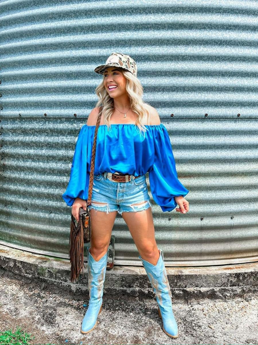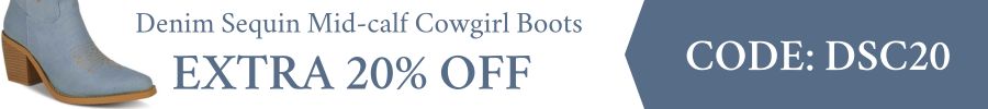 This is a denim embroidery cowboy boots, which is full of wild western cowgirl style, the high-quality blue denim materials with golden sequin design which is unique. come and shop now.